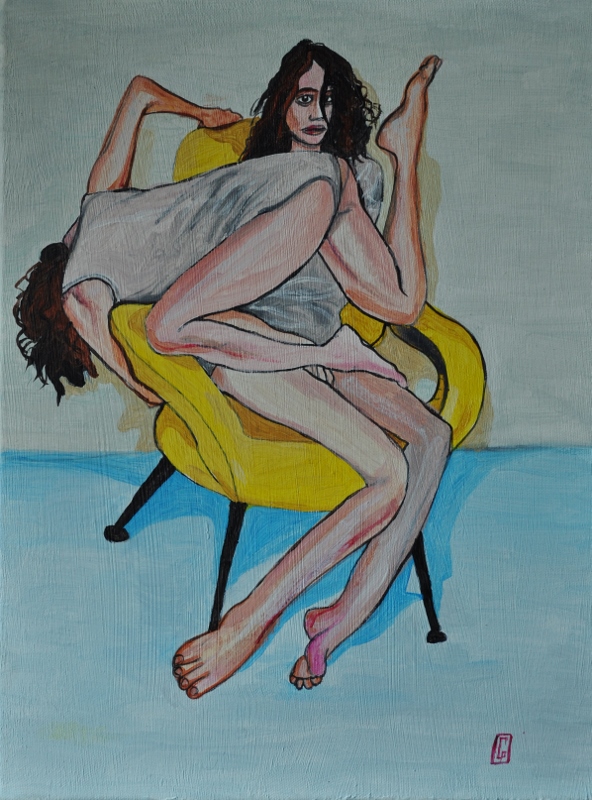 Reflets – peintures sur toiles : une réflexion la danse, le double et son miroir. Personnages dédoublés et regards troubles, dans une chorégraphie sensuelle.